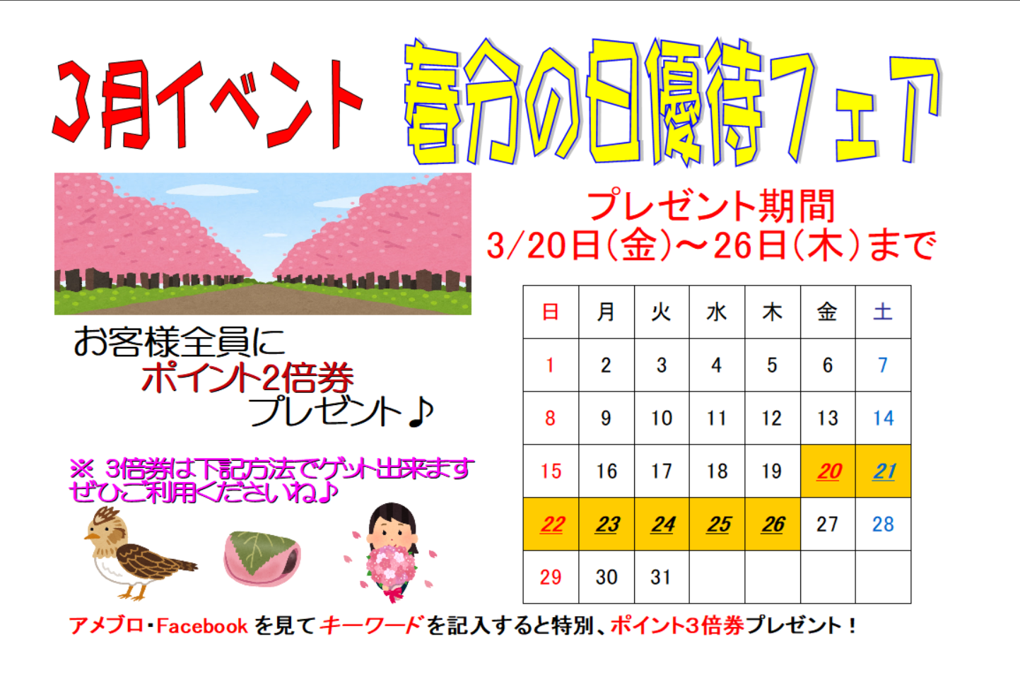 3月イベント『 春分の日優待フェア 』開催します!