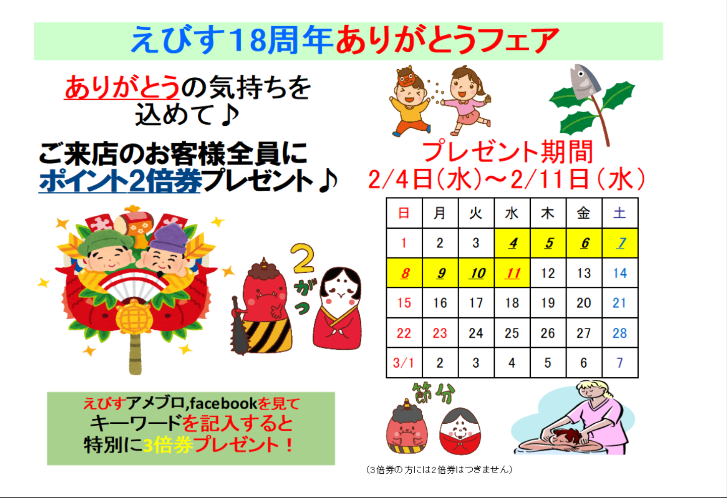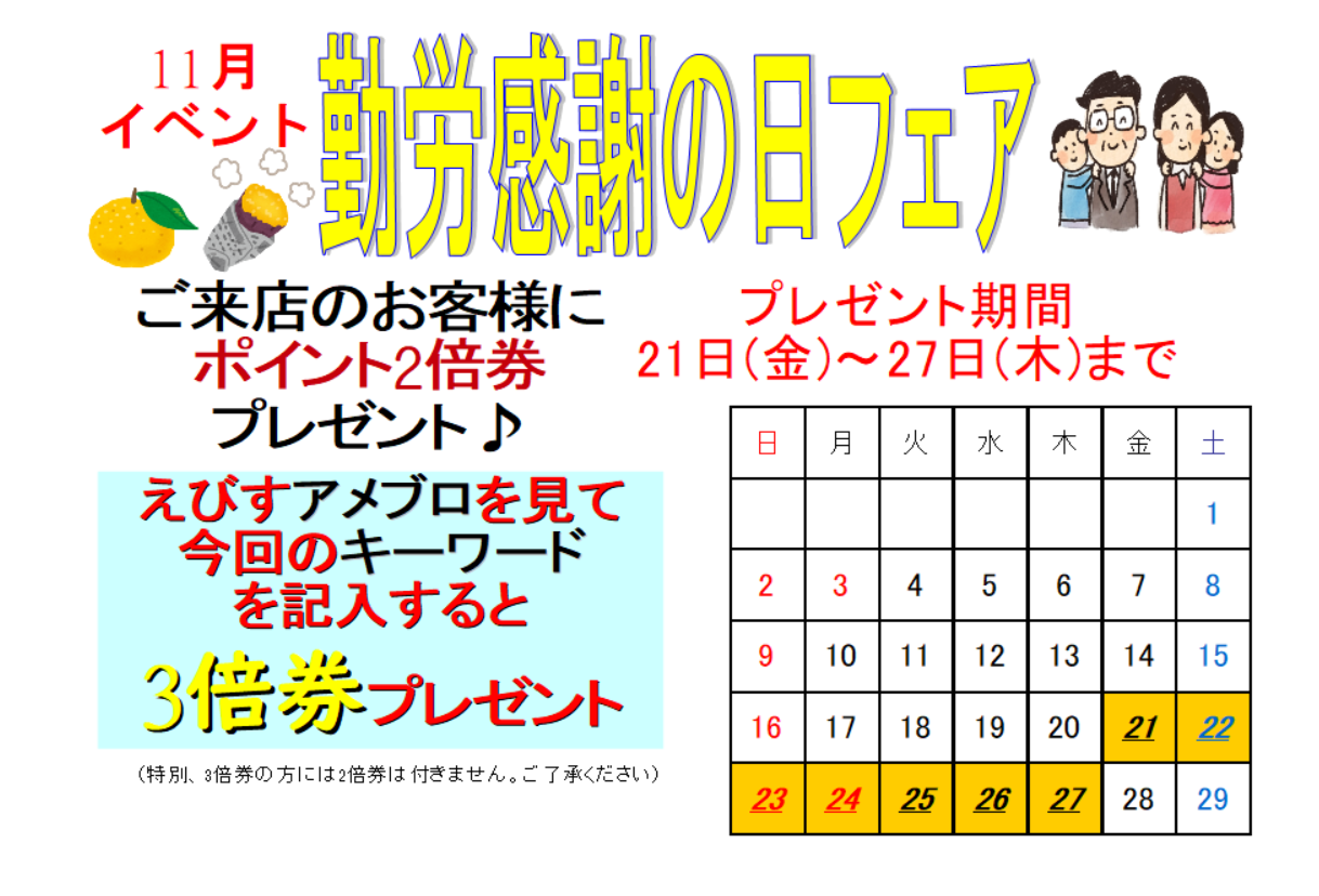 日頃のご愛顧の感謝を込めて《えびすポイント2倍券》を、若しくは