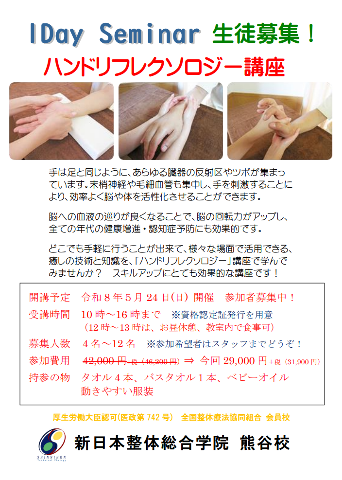 お問い合わせは 「新日本整体総合学院 熊谷校」 TEL048-530-3380 又は公式HP https://www.seitai-kumagaya.com/index.html